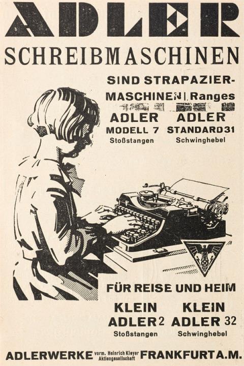 Werbeanzeige für Schreibmaschine Adler monochrom