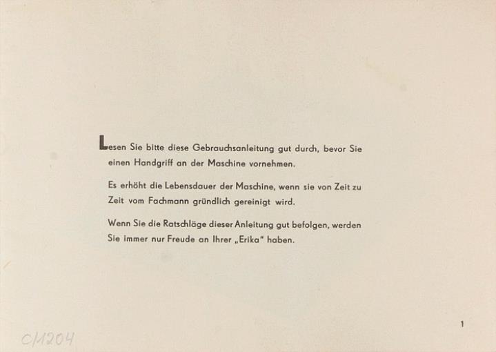 Bedienungsanleitung für Schreibmaschine Erika 10 Nr. AG 49/344/57