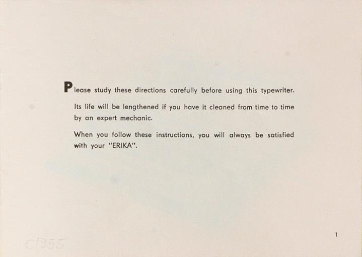 Bedienungsanleitung für Schreibmaschine Erika 10 Nr. Ag 048/191/60