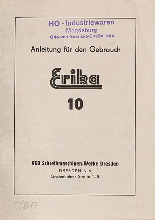Bedienungsanleitung für Schreibmaschine Erika 10 Nr. 08-04-045 III/79/17