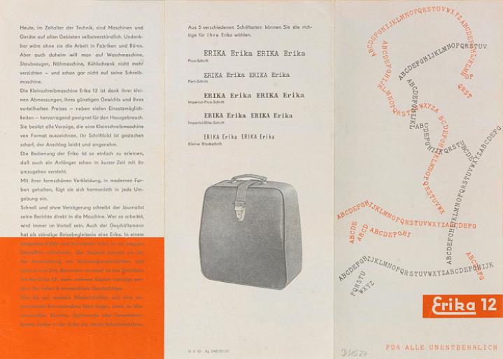 Faltprospekt für Schreibmaschine Erika 12 Nr. III 9 100 Ag. 048/101/61