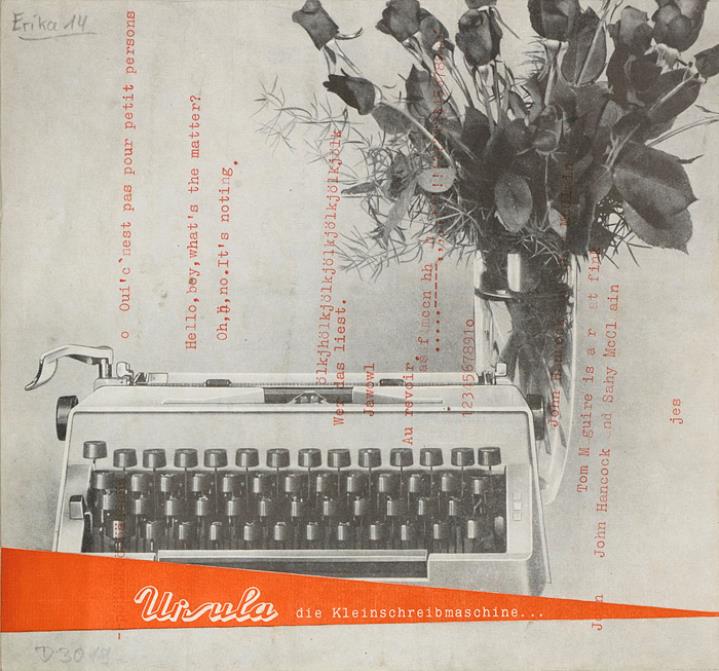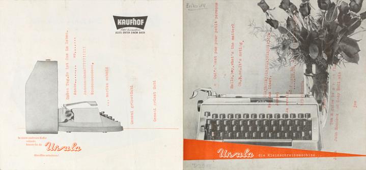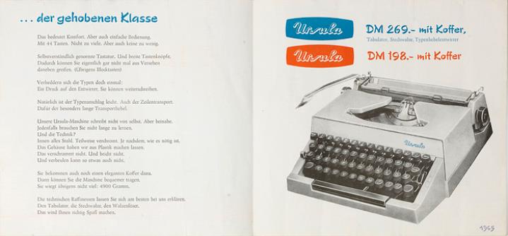 Faltprospekt für Schreibmaschine Ursula (Erika) Datum handschriftlich vermerkt