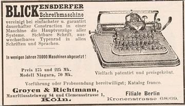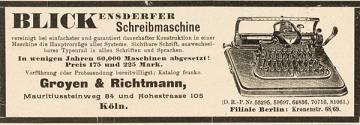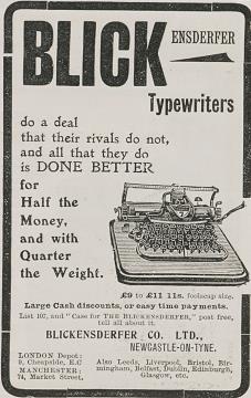 Werbeanzeige für Schreibmaschine Blickensderfer monochrom