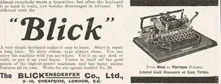 Werbeanzeige für Schreibmaschine Blickensderfer monochrom