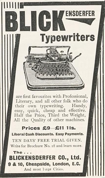 Werbeanzeige für Schreibmaschine Blickensderfer monochrom