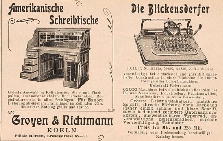 Werbeanzeige für Schreibmaschine Blickensderfer monochrom