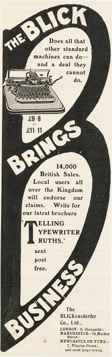 Werbeanzeige für Schreibmaschine Blickensderfer monochrom
