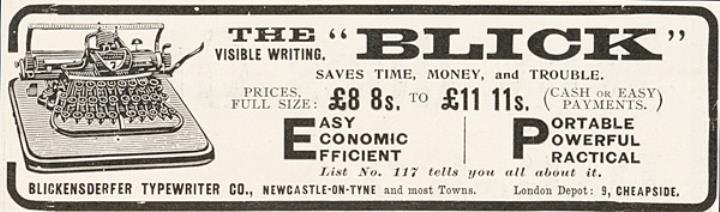Werbeanzeige für Schreibmaschine Blickensderfer monochrom