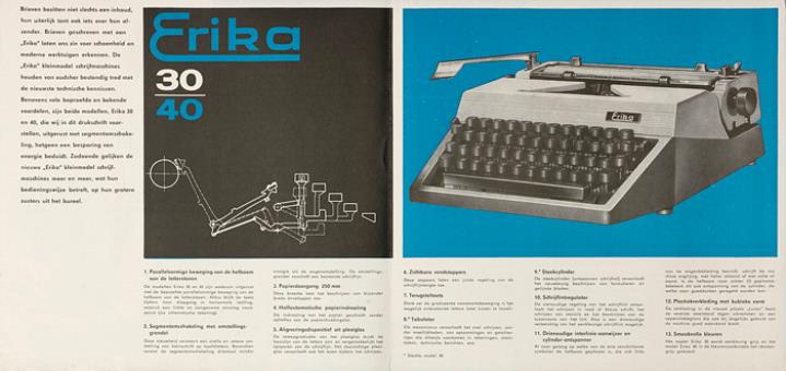 Faltprospekt in niederländischer Sprache für Schreibmaschine Erika 30, 40 Nr. III-9-19 Ag 048-018-65 holl.