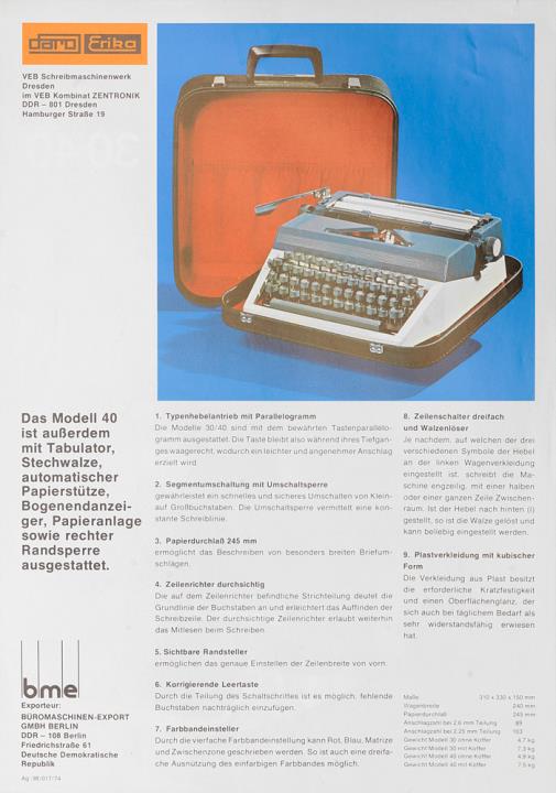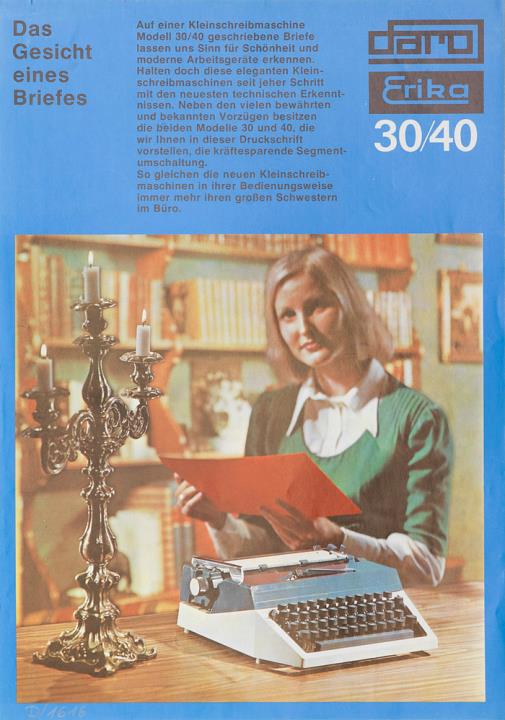 Prospekt für Schreibmaschine daro Erika 30, 40 Das Gesicht eines Briefes Nr. Ag 98/017/74