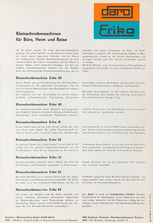 Prospekt für Schreibmaschine daro Erika Nr. Ag 25-136-69