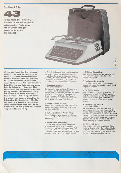 Prospekt für Kleinchreibmaschine daro Erika 33, 43 Modern in Technik und Form