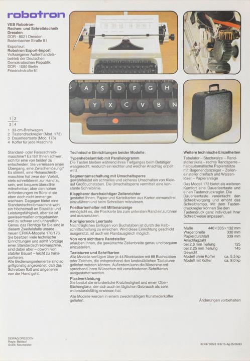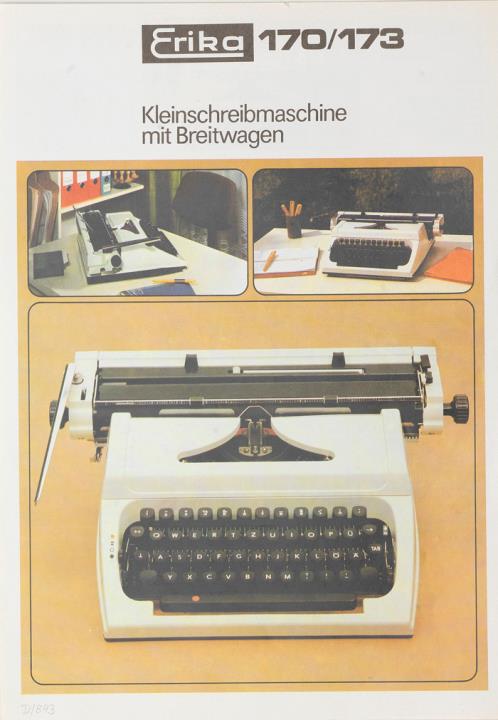 Prospekt für Schreibmaschine Erika 170, 173 Kleinschreibmaschine mit Breitwagen Nr. III/6/15 Ag 25/26/83