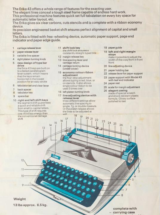 Prospekt für Schreibmaschine Erika 43 Fragment