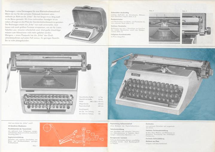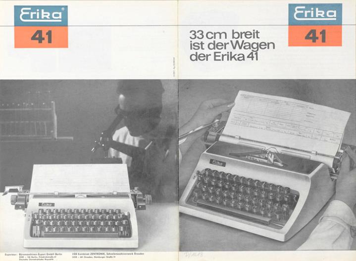 Faltprospekt für Schreibmaschine Erika 41 33 cm breit ist der Wagen der Erika 41 Nr. III729/1 Ag 25/083/69