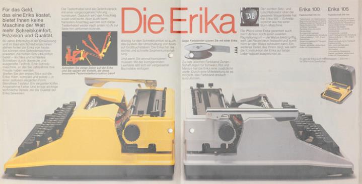 Faltprospekt für Schreibmaschine Erika 100, 105