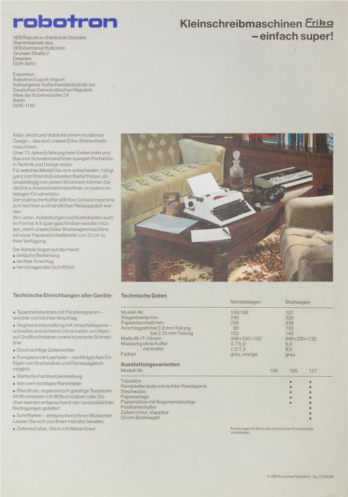 Prospekt für Schreibmaschine Erika Nr. Ag/25/89/89