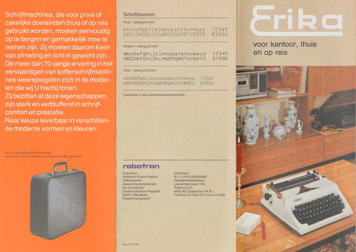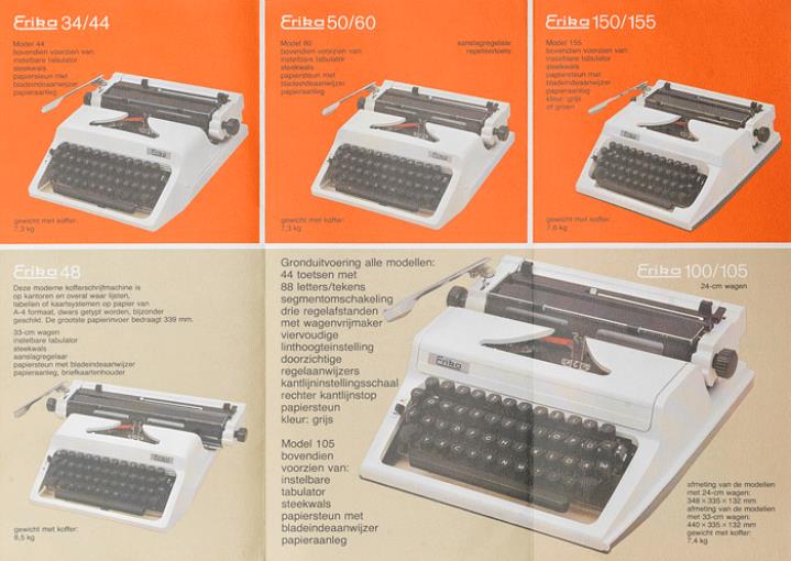 Prospekt in niederländischer Sprache für Schreibmaschine Erika Nr. Ag 25/137/82