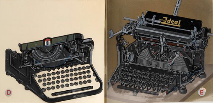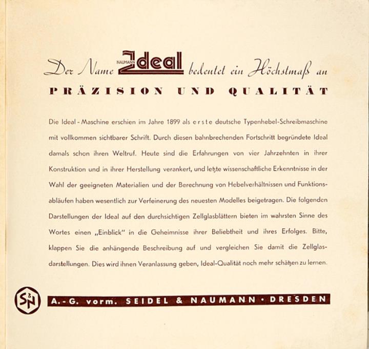 Prospekt mit Schnittdarstellungen für Schreibmaschine Ideal Nr. S 7370 te pf TG