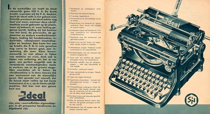 Prospekt in niederländischer Sprache für Schreibmaschine Ideal Nr. S 7338 tx pa YEX