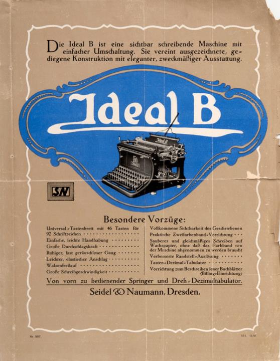 Prospekt für Schreibmaschine Ideal B Nr. 3057