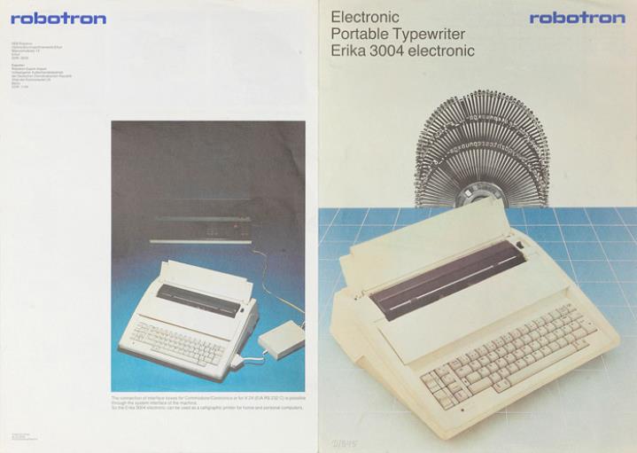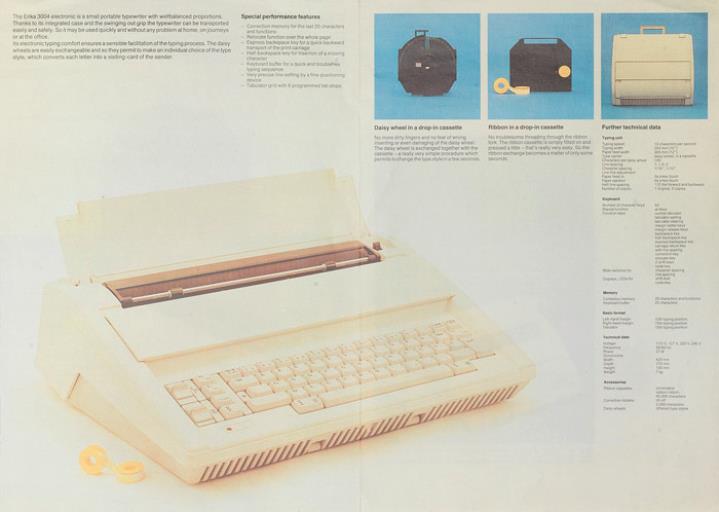 Faltprospekt für elektronische Schreibmaschine Erika 3004 Electronic Portable Typewriter Nr. Ag 25/26/88