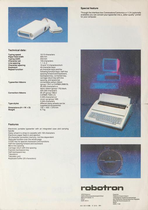 Prospekt für elektronische Schreibmaschine Erika 3004 portable electronic typewriter Nr. AG 25/117/88 V 3/15 - 991