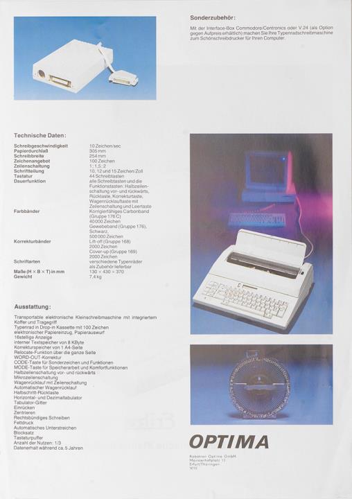 Prospekt für Schreibmaschine Erika 3006 Elektronische Kleinschreibmaschine