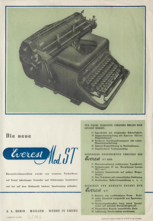 Prospekt für Büroschreibmaschine Everest ST