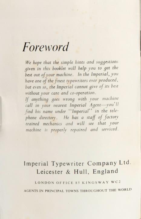 Pflegeanleitung für Schreibmaschine Imperial Nr. T64