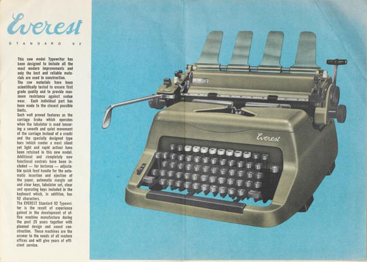 Bedienungsanleitung in englischer Sprache für Schreibmaschine Everest Standard 92