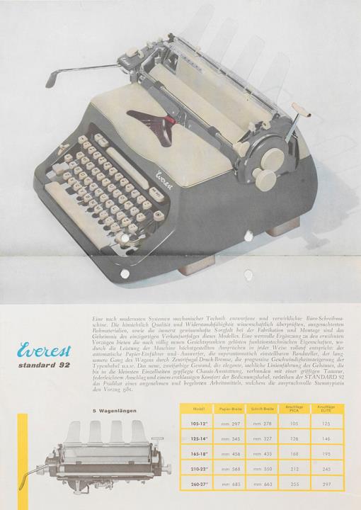 Faltprospekt für Schreibmaschine Everest Standard 92 Nr. E.340