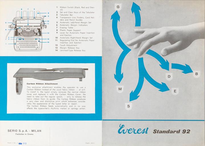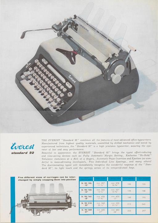 Faltprospekt in englischer Sprache für Schreibmaschine Everest Standard 92 Nr. E.312