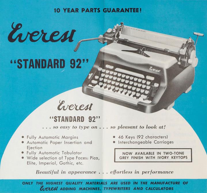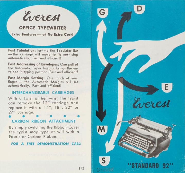 Faltprospekt in englischer Sprache für Schreibmaschine Everest Standard 92 Nr. S 42