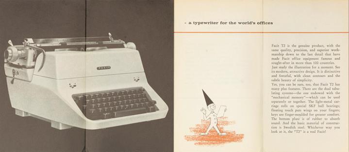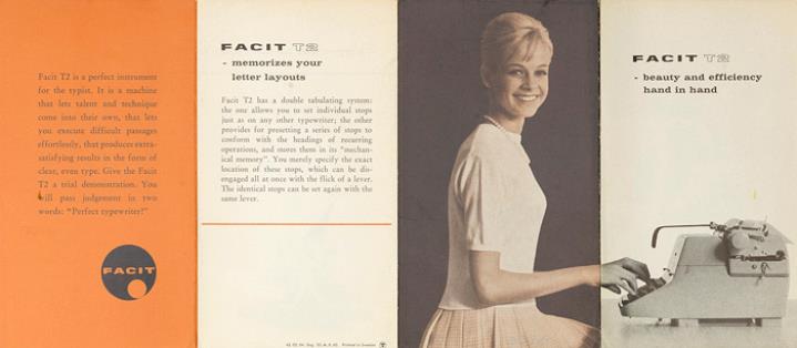Faltprospekt für Schreibmaschine Facit T2 Nr. 43.02.04.Eng.50.M.8.60.