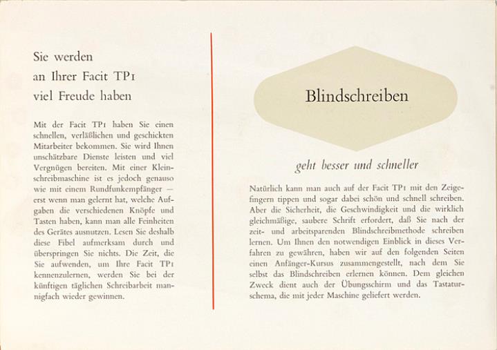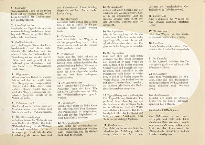 Bedienungsanleitung für Kleinschreibmaschine Facit TP1 Nr. 51.01.01.Ty.5M.9.59.