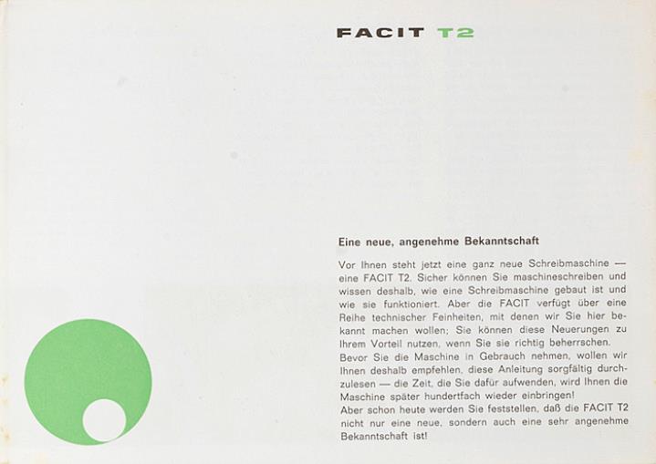 Bedienungsanleitung für Schreibmaschine Facit T2 Nr. 43.01.02.Ty.3M.11.62. Jahreszahl handschriftlich auf Prospekt vermerkt