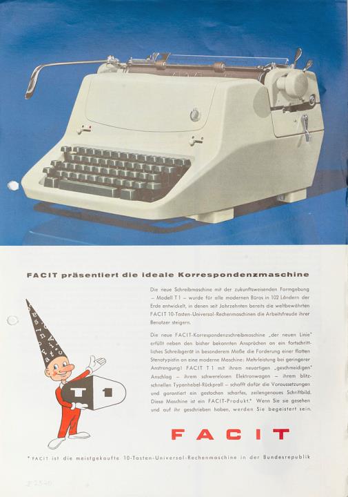 Next to literature on the history of technology, of the typewriter and the office, the Archive holds patent letters, textbooks and instruction manuals as well as historical postcards, letters, photographs and various kinds of advertising (leaflets and brochures, advertising stamps, newspaper ads, posters and signs, promotional gifts).