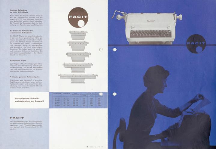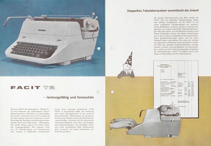 Faltprospekt für Schreibmaschine Facit T2 Nr. 43.02.02.ty.30M.6.60
