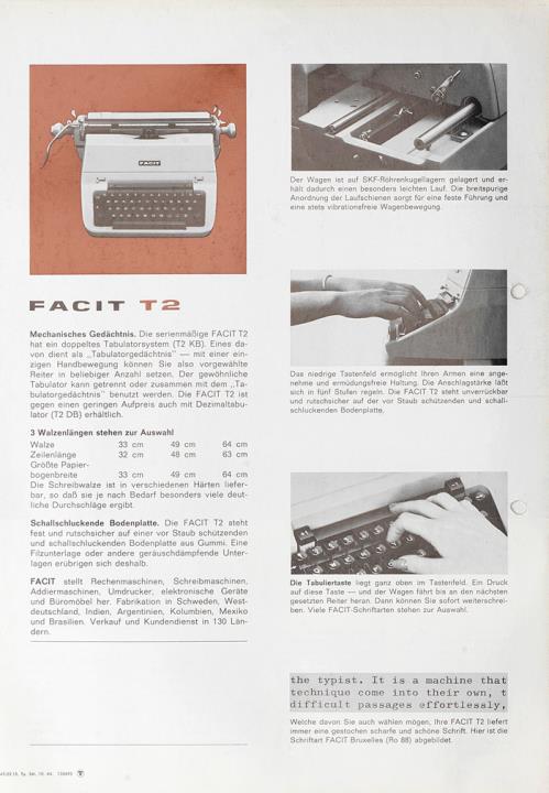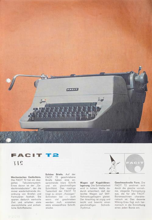 Prospekt für Schreibmaschine Facit T2 Nr. 43.02.15.Ty.5M.10.64.