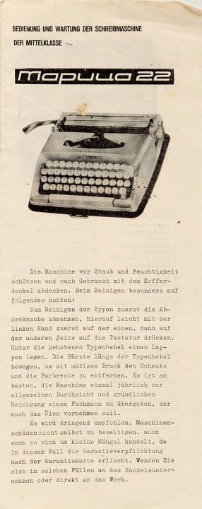 Bedienung und Wartung der Schreibmaschine der Mittelklasse Maritsa 22