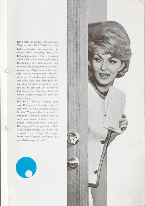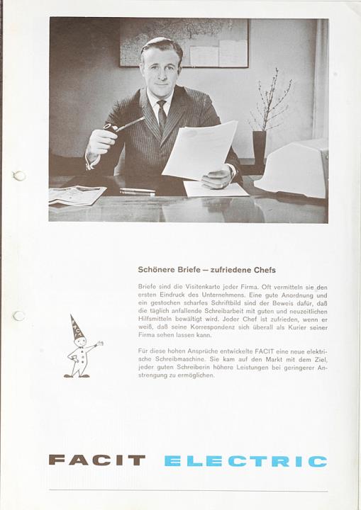 Faltprospekt für Schreibmaschine Facit Electric Nr. 42.02.17.Ty.35M.6.64.