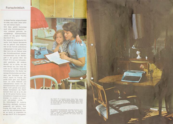 Prospekt für Schreibmaschine Facit TP2 mit Datumstempel versehen