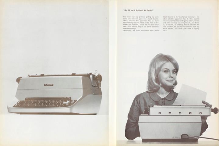 Faltprospekt für Schreibmaschine Facit Electric Nr. 42.02.22.Eng.9M.7.68