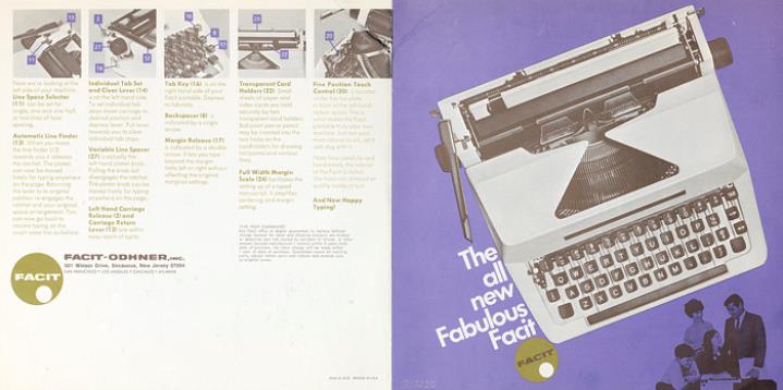 Faltprospekt für Schreibmaschine Facit 1620 Nr. 16-NJ-10/70/20