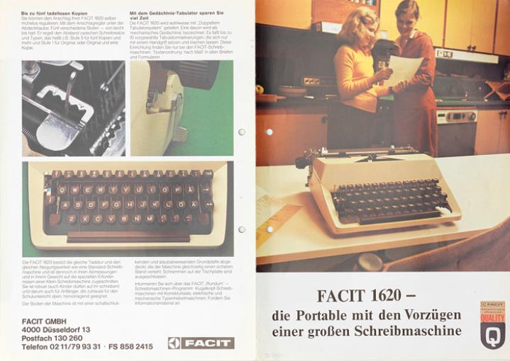 Faltprospekt für Schreibmaschine Facit 1620 die Portable mit den Vorzügen einer großen Schreibmaschine