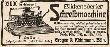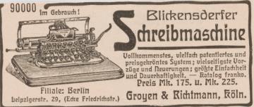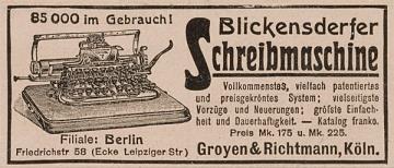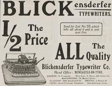 Werbeanzeige für Schreibmaschine Blickensderfer monochrom