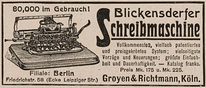 80,000 im Gebrauch! Blickensderfer Schreibmaschine
