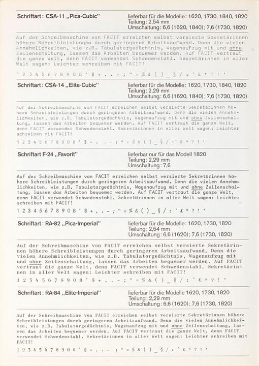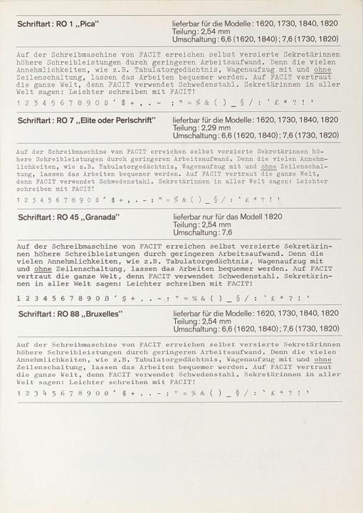 Schriftprobenprospekt für Schreibmaschine Facit Leichter schreiben mit Facit Nr. FS 822/2/2.73
