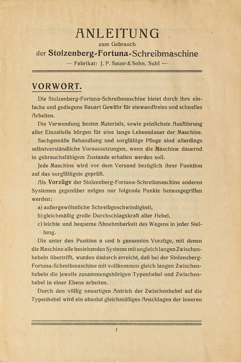 Stolzenberg Fortuna Schreibmaschine Gebrauchsanweisung